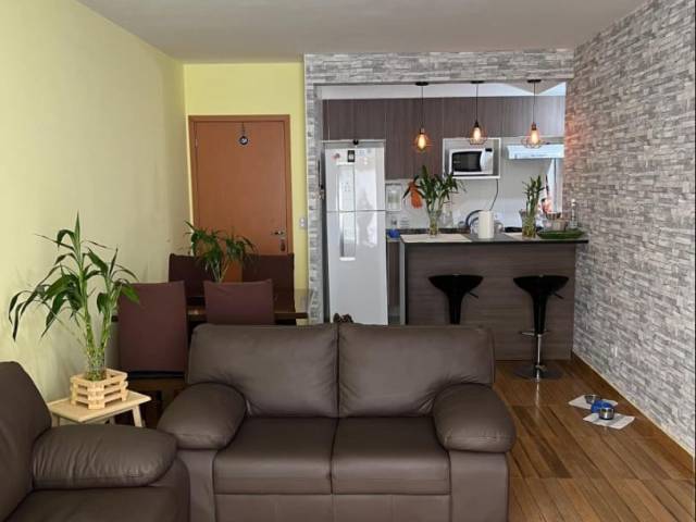 2 dormitórios, sendo uma suíte, 2 banheiros, sala de estar, cozinha estilo americana planejada, porcelanato na cozinha e banheiros, área de serviço e uma vaga de garagem coberta fixa.